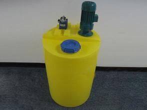 在水處理工程中加藥箱主要用于各種藥劑的攪拌、溶解、儲存,再通過計量泵或水射器將藥液投加到各投加點。 加藥箱外形分為方形和圓形,材質為聚乙烯(PE),通過滾塑技術一次成型,上部預設了計量泵及攪拌機的安裝位置,攪拌機、加藥箱、計量泵三合一,使用非常方便。