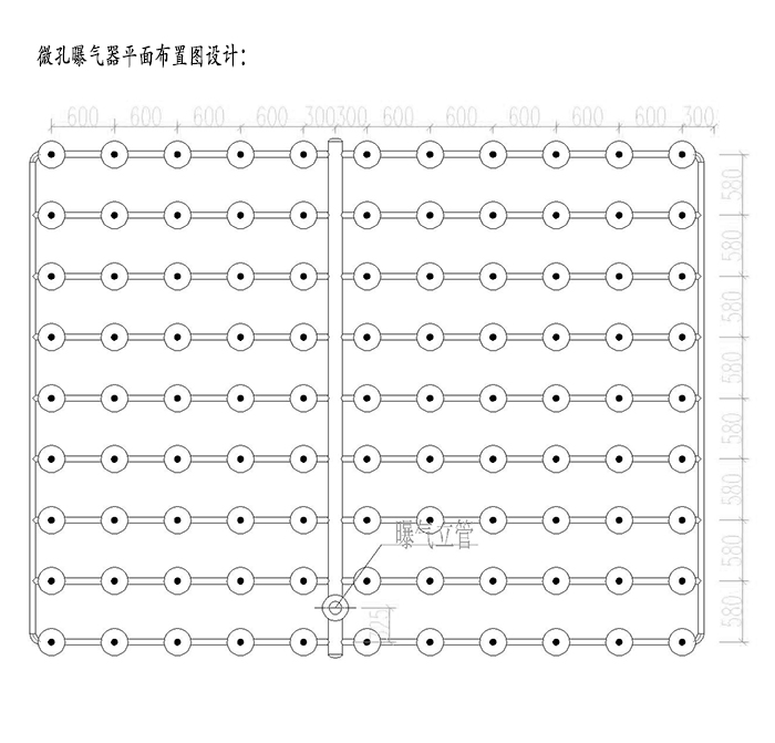 空氣管設計應考慮壓力平衡,最好聯成環(huán)狀網,每組進氣管應設置閥門,便于調節(jié)空氣量。空氣管設計流速:干管為10-15米/秒;支管為5米/秒。曝氣器表面距池底安裝高度:270mm、250mm,推板式為200mm。