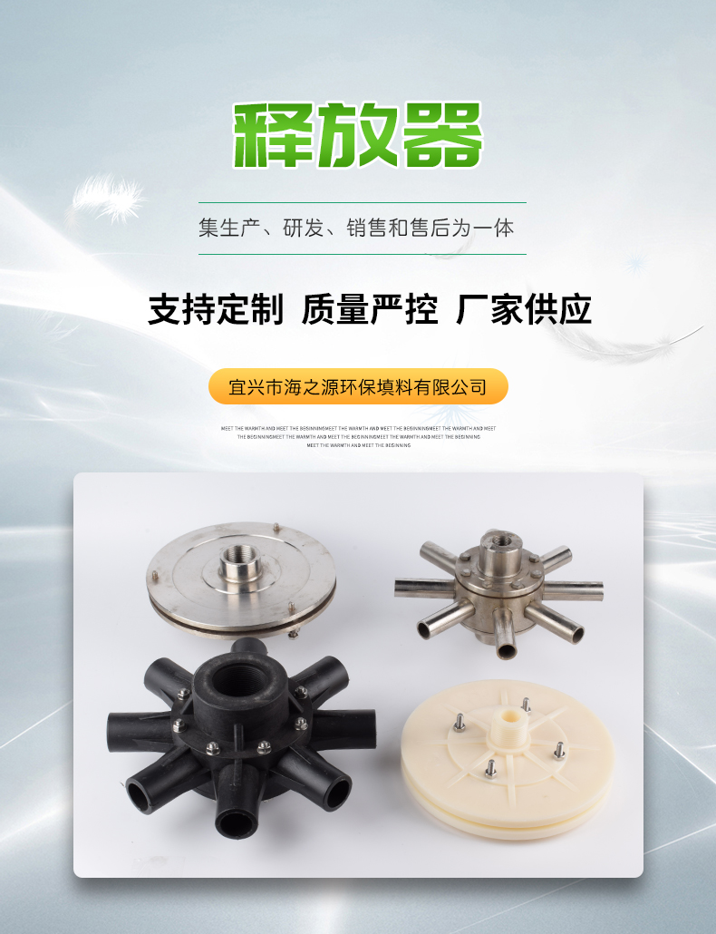 釋放器是溶氣氣浮凈水系統(tǒng)中關(guān)鍵裝置。壓力溶氣水只有通過該裝置降壓消能后,才能釋放出大量的微細氣泡,釋放器性能的好壞,涉及到氣泡的微細度,它直接影響氣浮法凈水的效果。本釋放器可反沖洗,不易堵塞。
